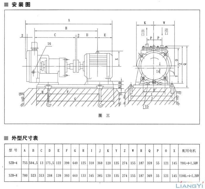 目前制造的本型號泵有:SZB-4、SZB-8。其中4(8)表示當(dāng)水銀柱高為520毫米時的氣量(升/秒)。